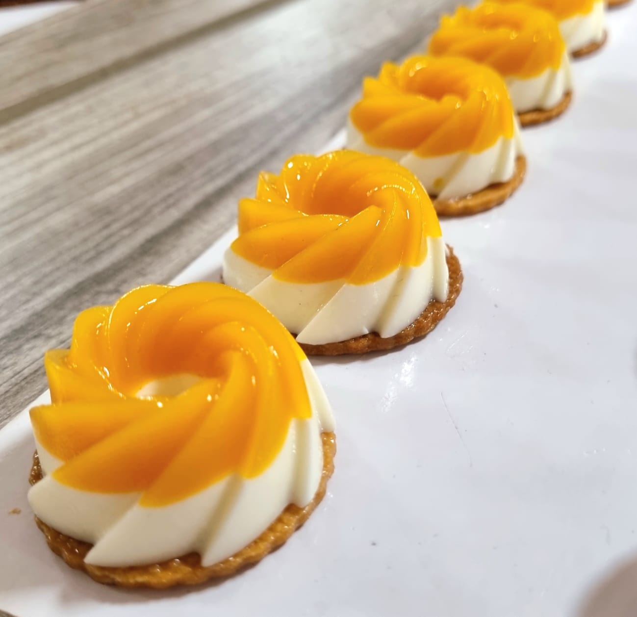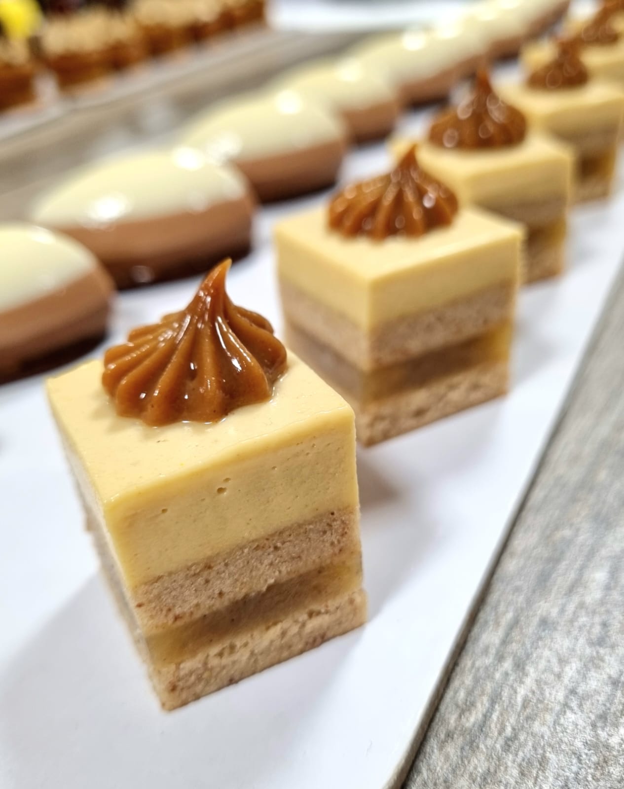 Una panna cotta al lime, profumata da una galee ai frutti esotici e una frolla friabilissima alla vaniglia. 3 basi per un pasticcino estremamente bello e goloso.
